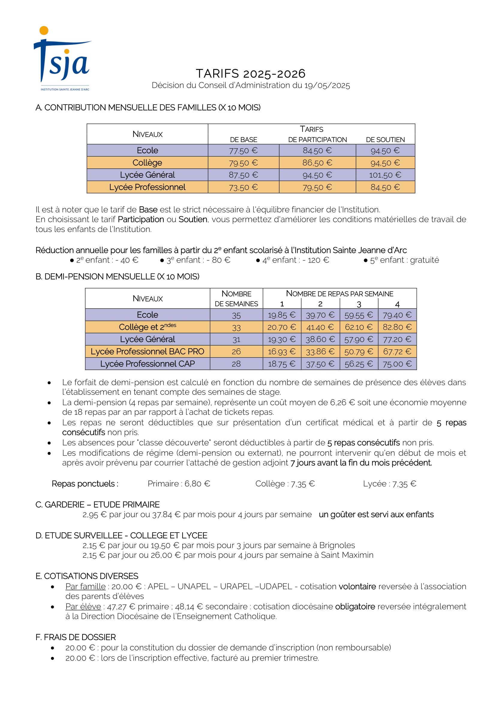 A partir de cette rentrée les demandes sont à renouveller chaque année.